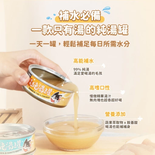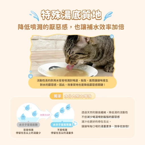 • 特殊湯質地,讓貓喝湯的效率加倍