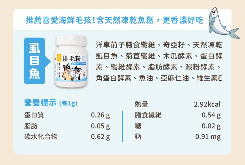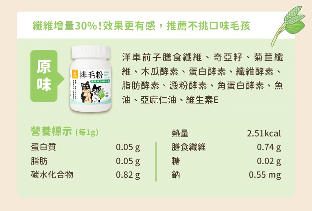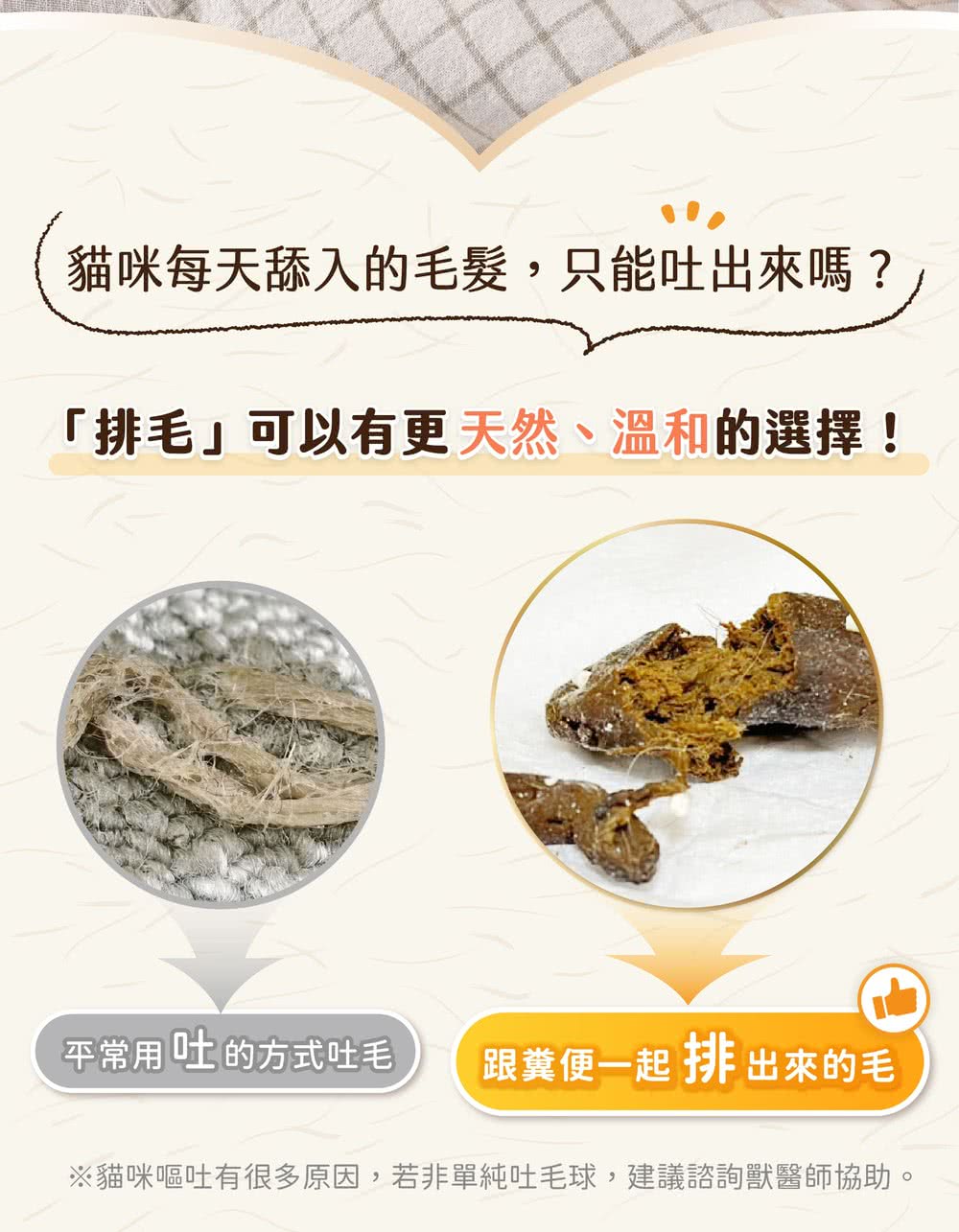 調整份量:若有便秘或吐毛的狀況,可增加使用頻率。