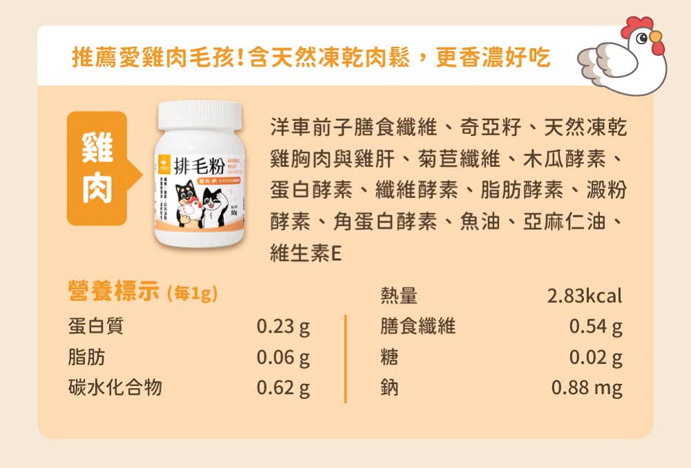 混合濕食:排毛粉中的纖維吸飽水後會呈QQ彈彈的狀態,屬正常現象。