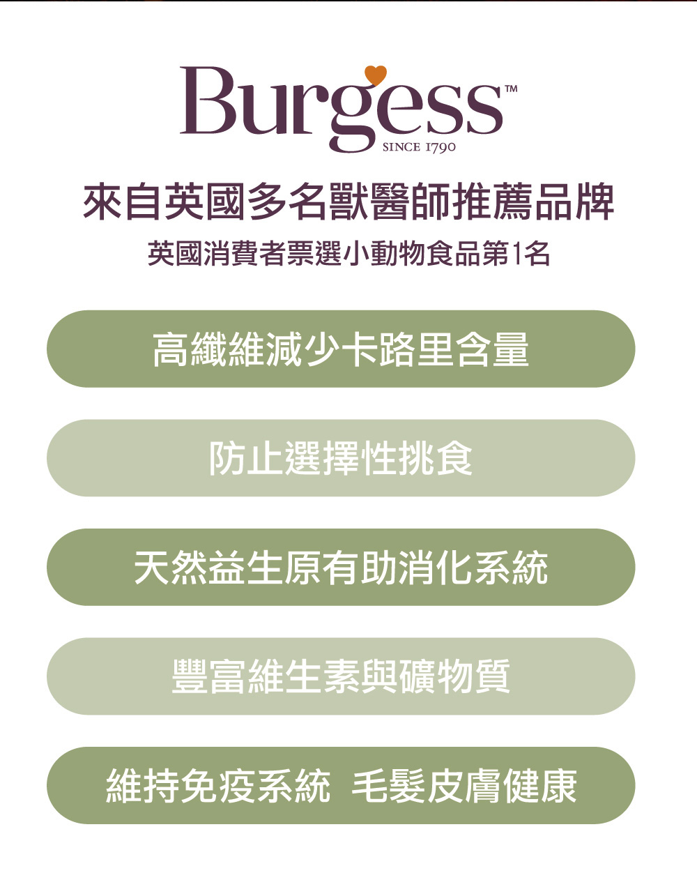 自然高纖維,防止選擇性攝食。